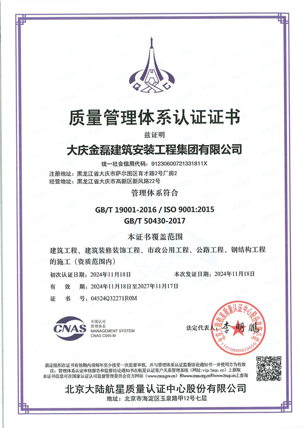 質(zhì)量管理體系認(rèn)證證書(shū)